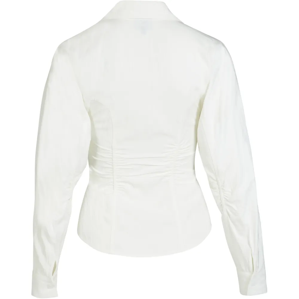 Hvit elastisk skjorte laget av en behagelig og lett bomullsmateriale. Designet i en lang og oversized passform med en fin smock-detalj ved ermene, som gir den et feminint uttrykk. Style skjorten din sammen med et...