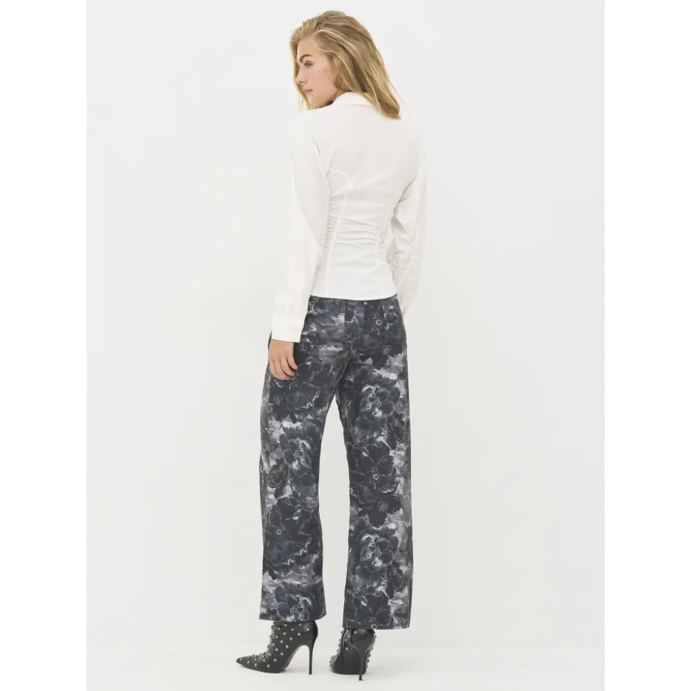 Tilfør garderoben din et hint av fargerik eleganse med denne toppen, prydet med et vakkert blomstermønster både foran og på ermene. Den kontrastfulle svarte baksiden gir en moderne vri og lar mønsteret komme til sin...