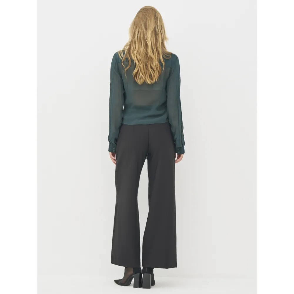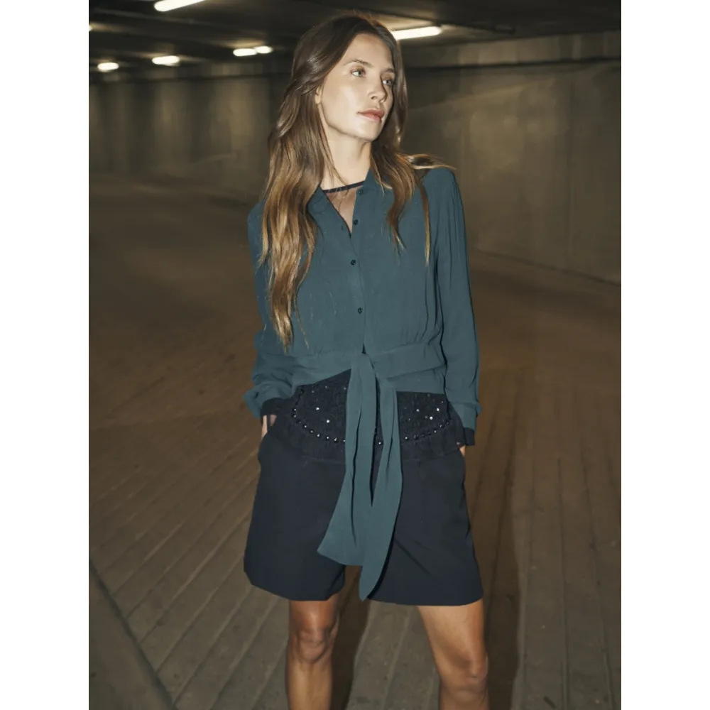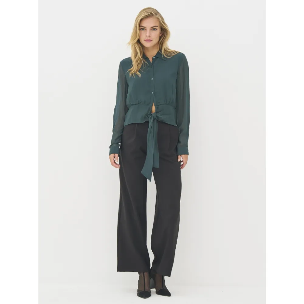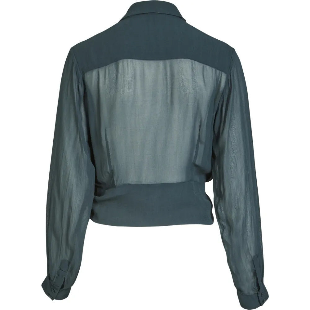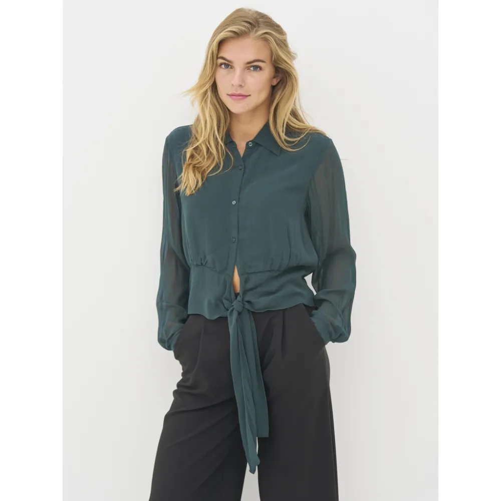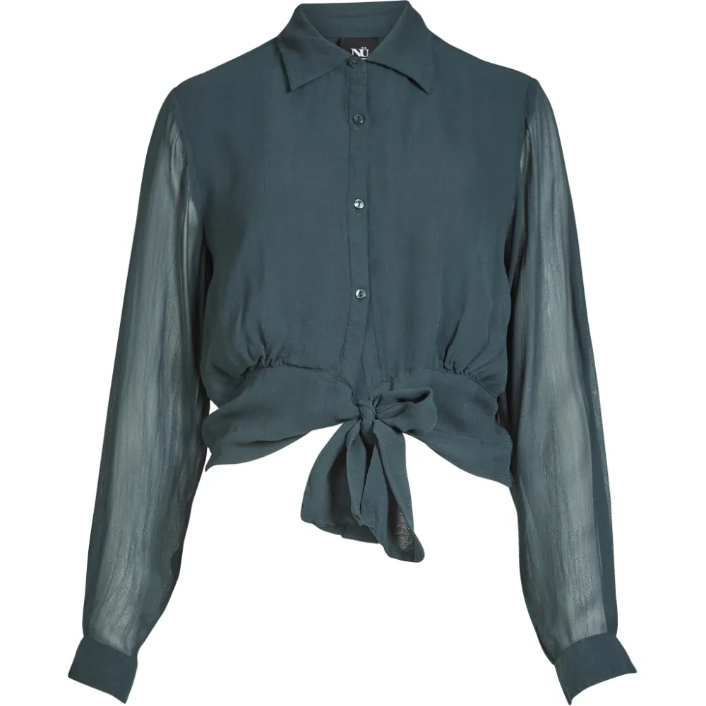 Skap en lys og feminin look med denne skjorten i gjennomsiktig materiale. Den har en klassisk krage, knappelukking foran og lange ermer med mansjetter. Skjorten knytes i livet for en flatterende silhuett og et avslappet, men likevel velkledd utseende.