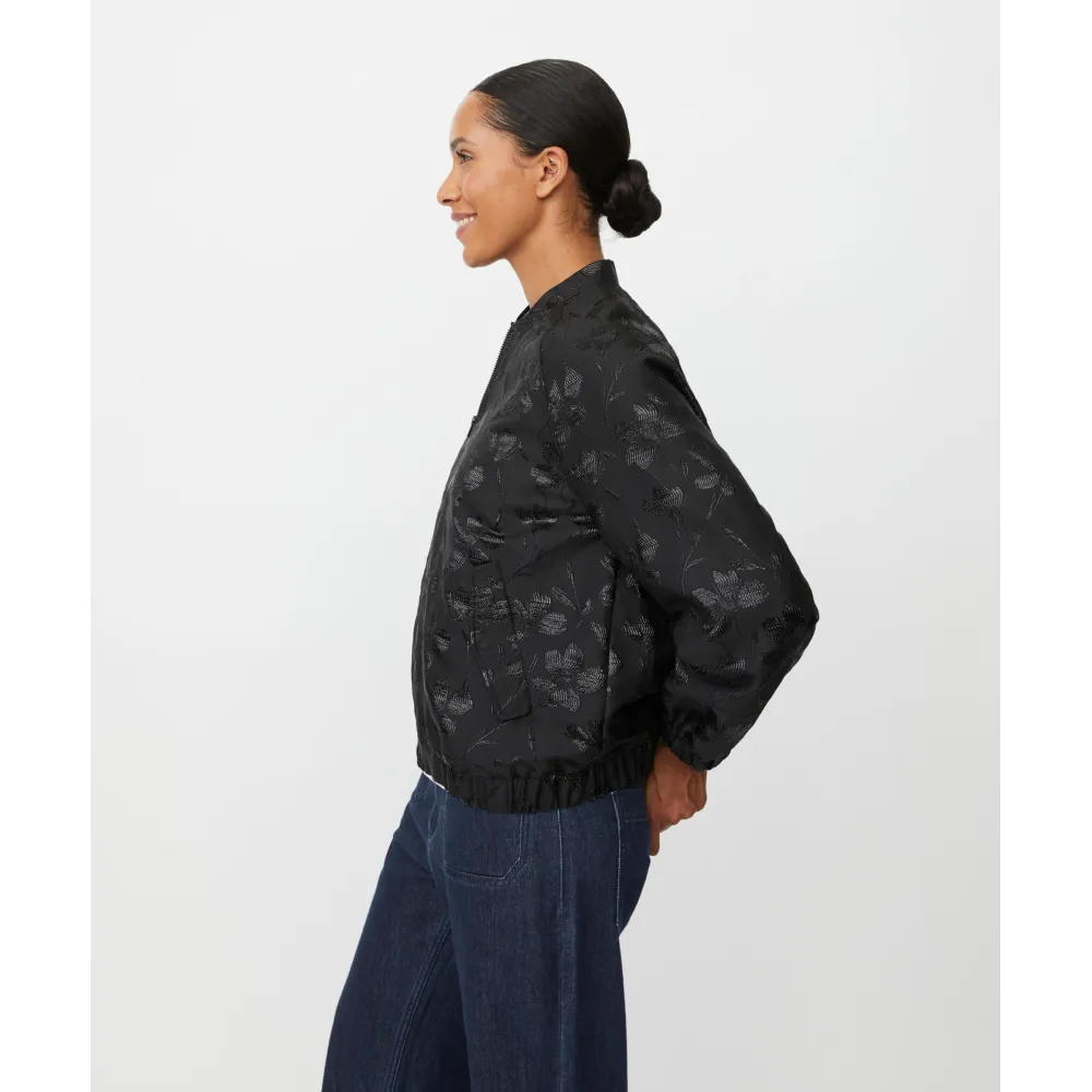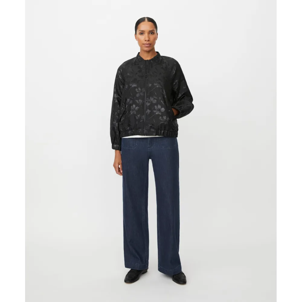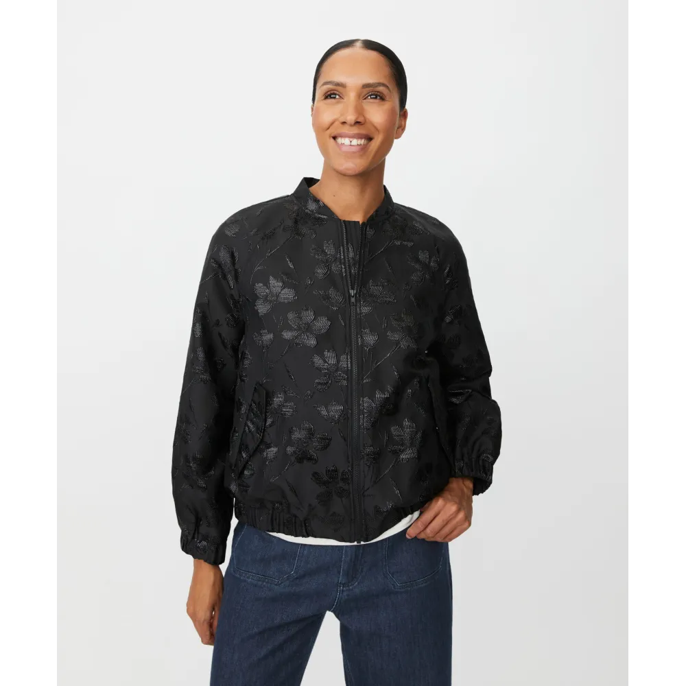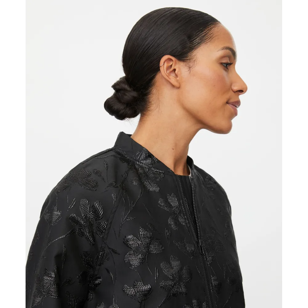 Denne jakken kombinerer sporty bomberstil med eleganse. Den eksklusive jacquardkvaliteten har en diskret blomsterstruktur som fanger lyset og gir et feminint og glamorøst uttrykk.