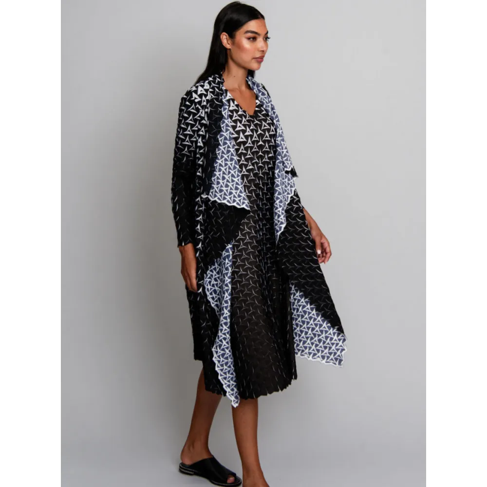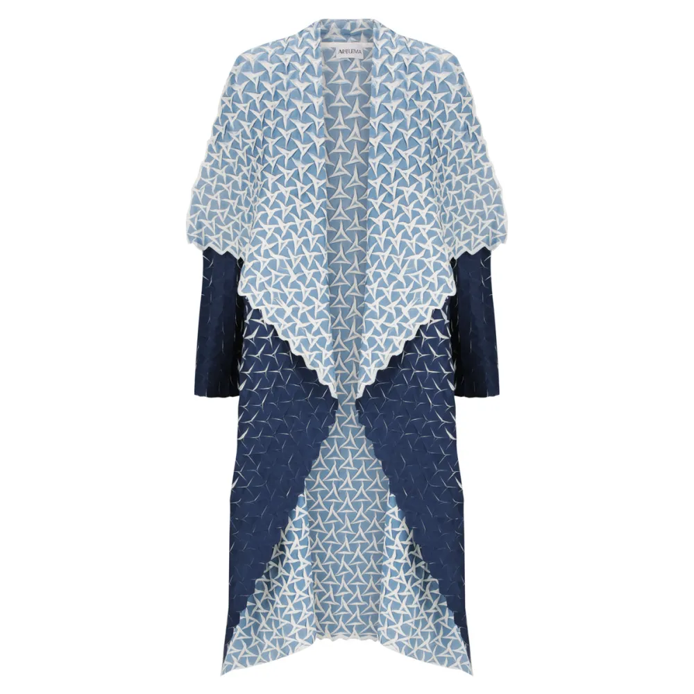 Blå/sort er cavier nightfall Collare Coat minner om et langt fossefall. De vakre plisserte foldene som er laget i chiffonmaterialet gjør det til et Alquema-plagg som er lett å bære og passer perfekt sammen med Long...