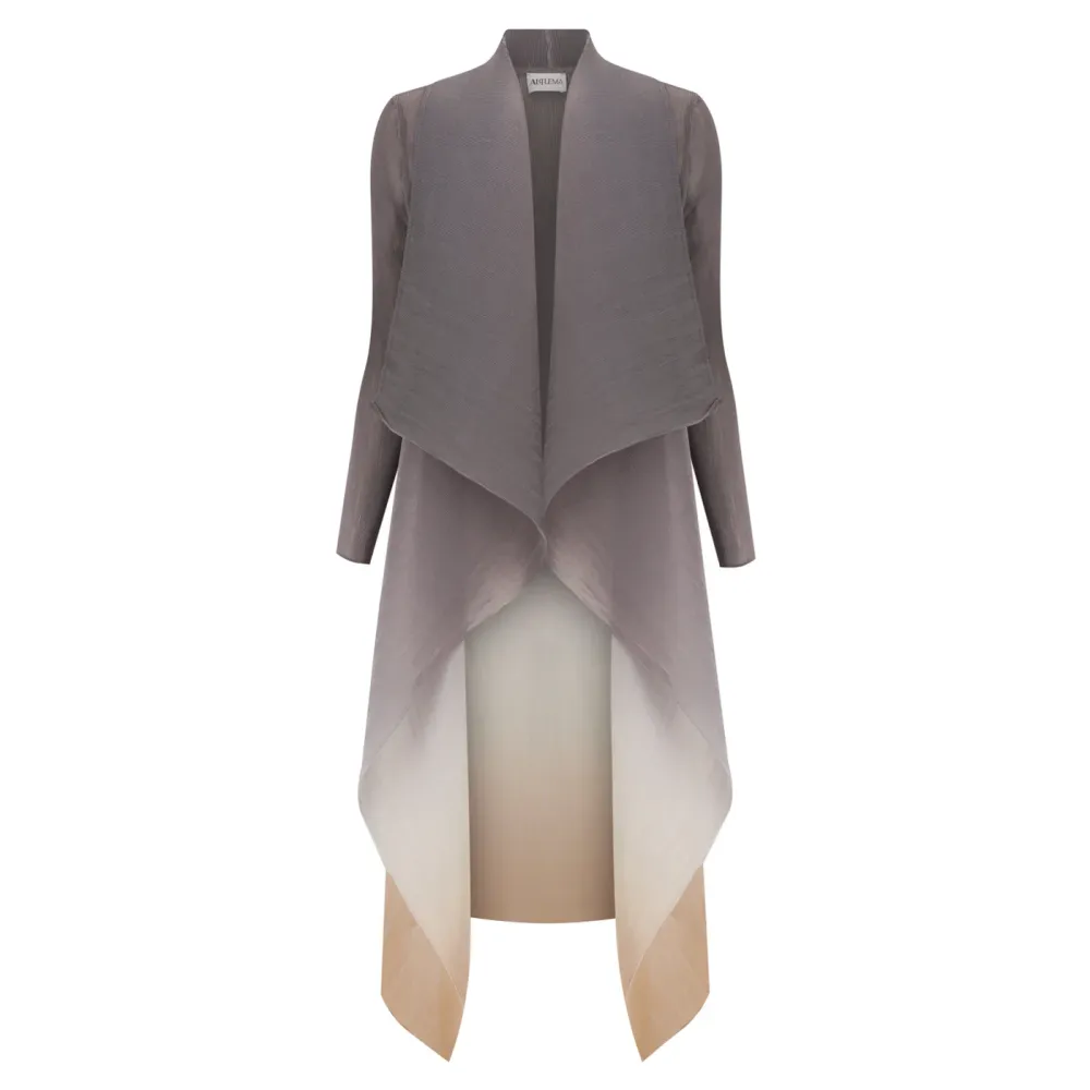 Collare Coat minner om et langt fossefall. De vakre plisserte foldene som er laget i chiffonmaterialet gjør det til et Alquema-plagg som er lett å bære og passer perfekt sammen med Long Estrella-kjolen. Et helt...