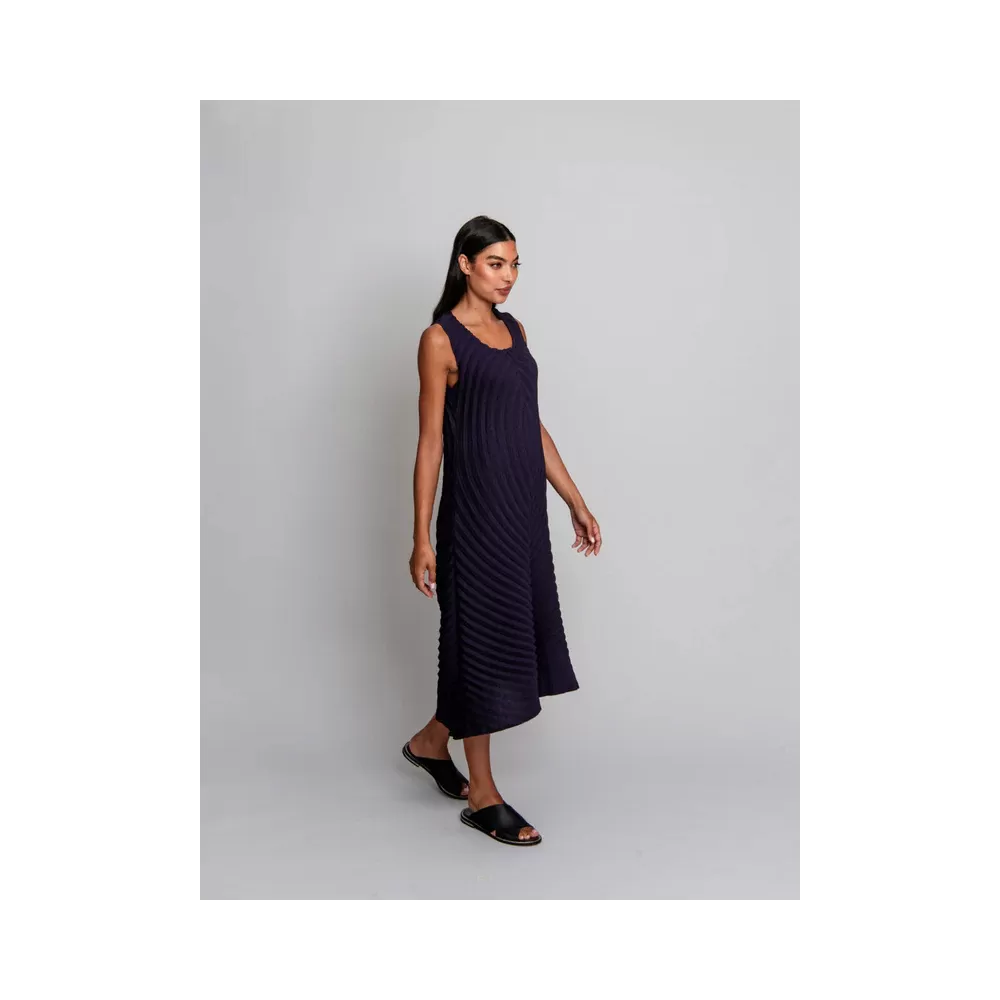 Den bestselgende ermløse kjolen som også er flott med en skjorte inni. Fantastisk snitt, tidløs og håndlaget. Sitter fint med de føyelige pliseene og er behagelig på kroppen. Rund hals. Lengde str 1 er ca 108 cm....