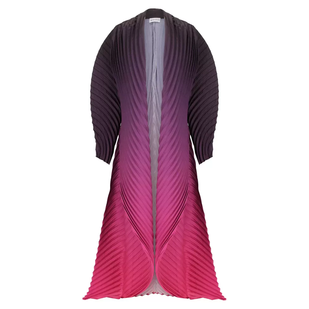 Collare Coat minner om et langt fossefall. De vakre plisserte foldene som er laget i chiffonmaterialet gjør det til et Alquema-plagg som er lett å bære og passer perfekt sammen med Long Estrella-kjolen. Et helt...