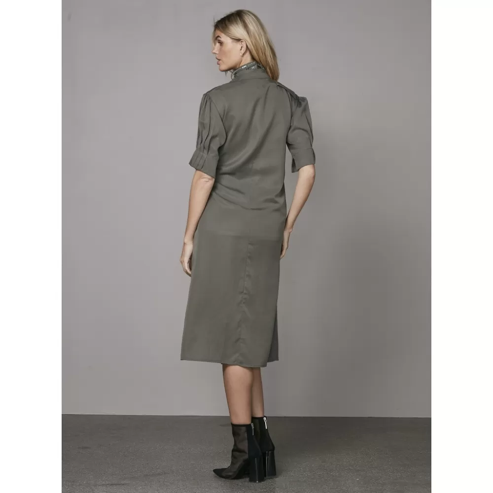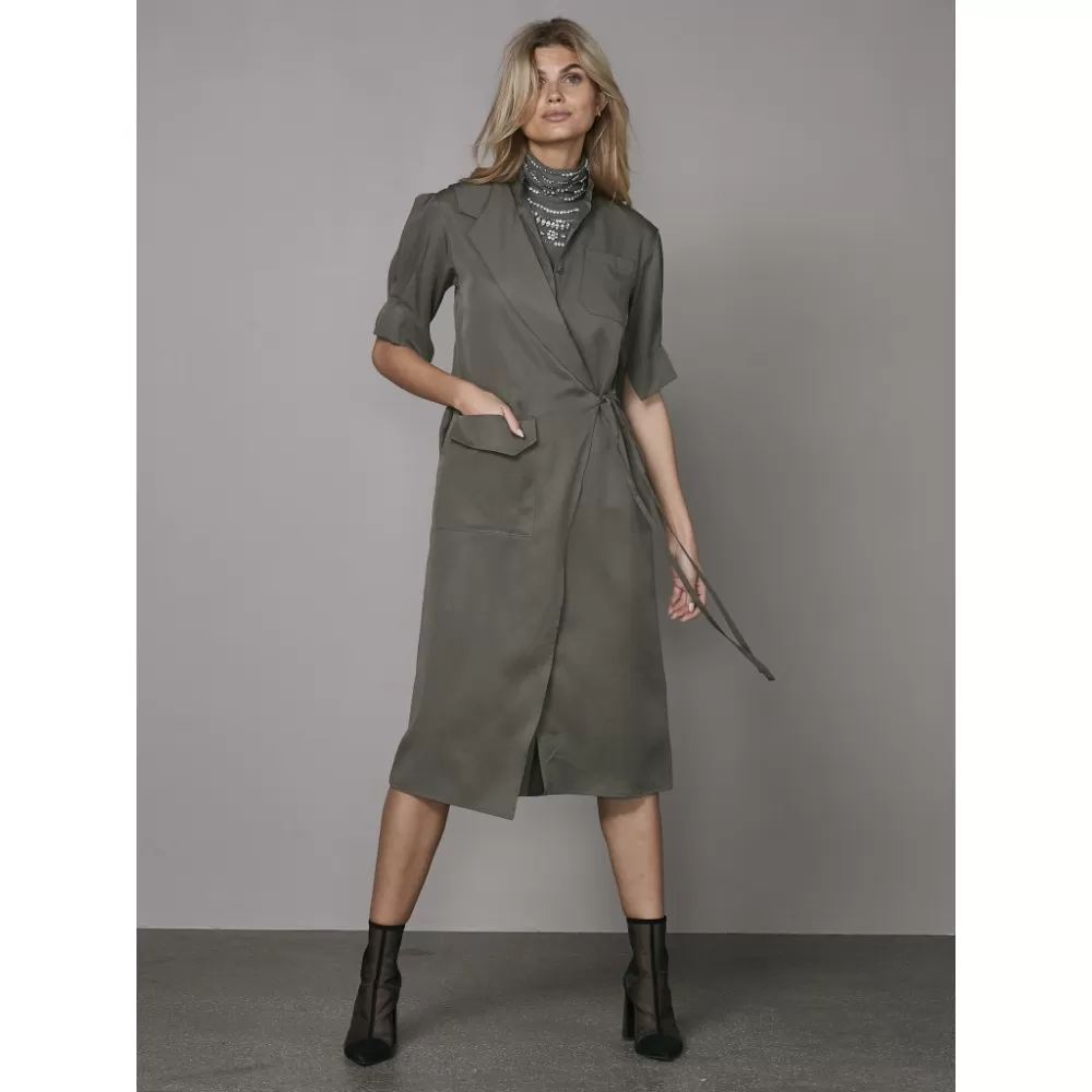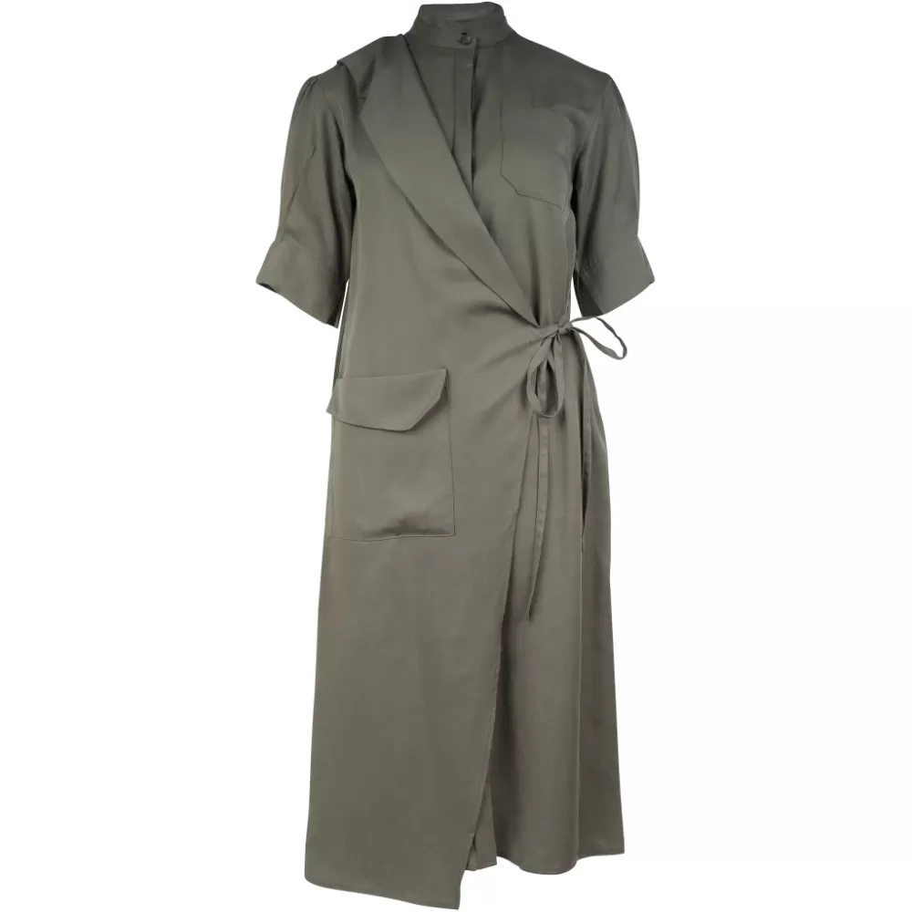 Denne vakre kjolen kombinerer funksjonalitet og eleganse med sine praktiske sidelommer og store frontlommer.