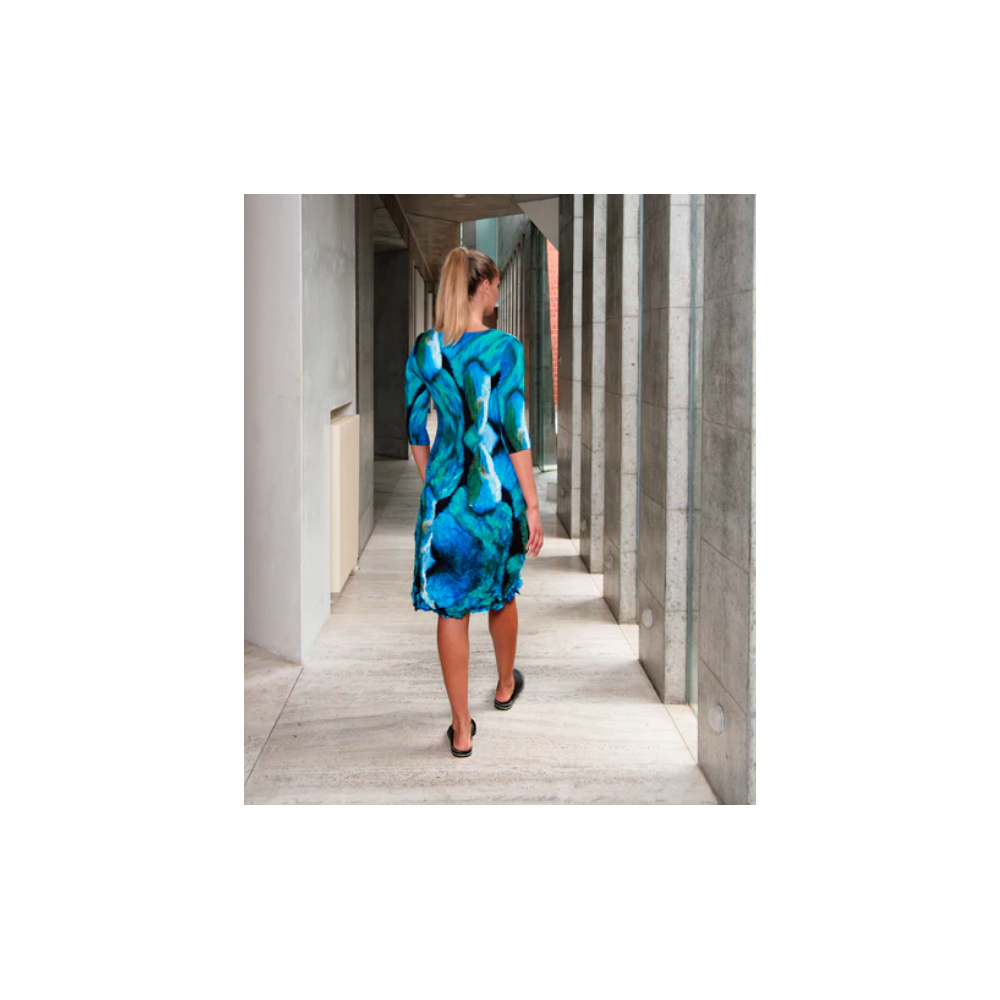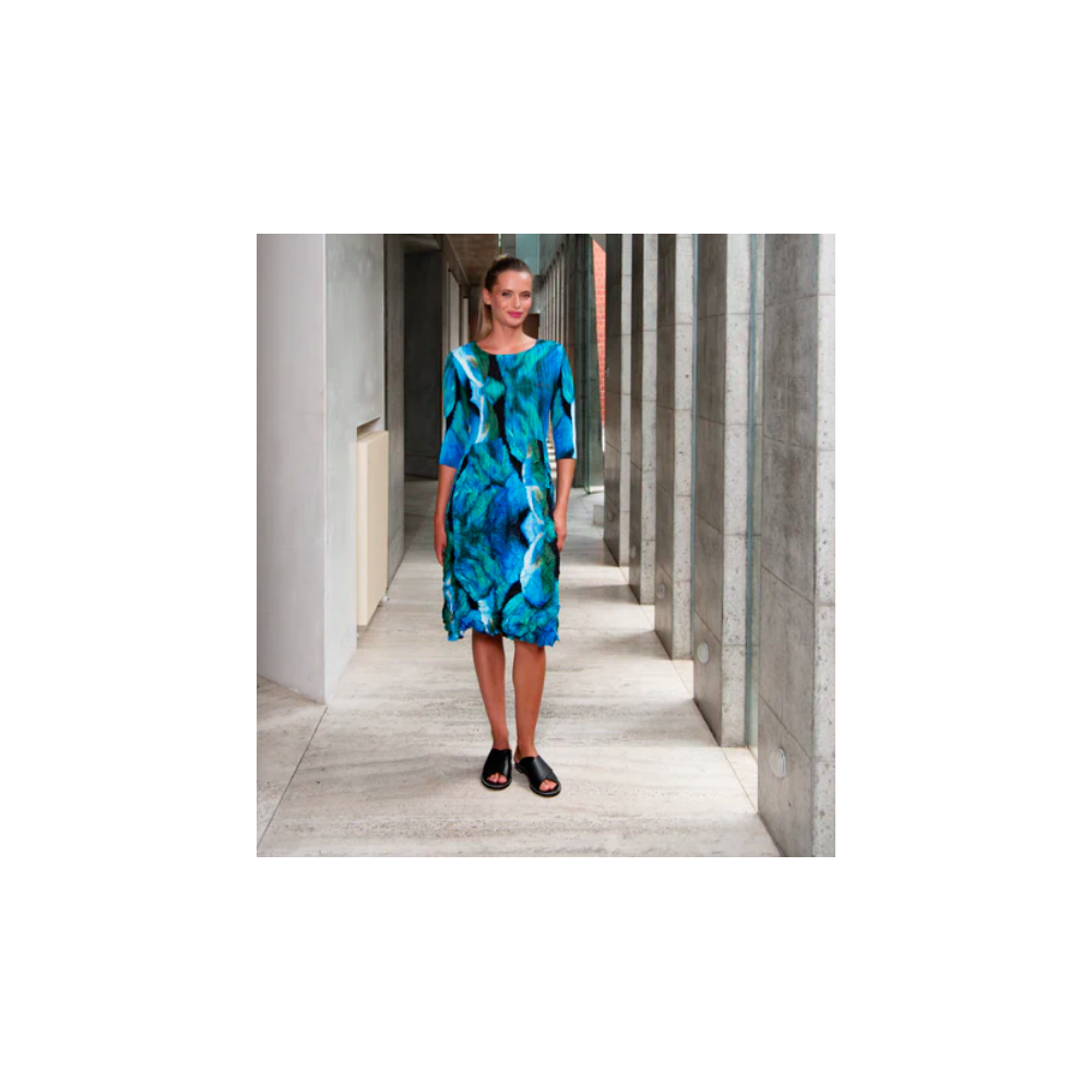Alquema. 3/4 Sleeve Smash Pocket Dress. Rainbow moon bear