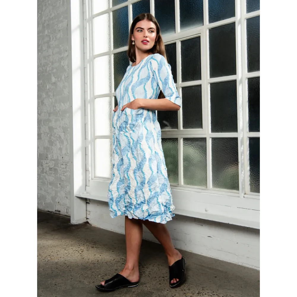 Alquema. 3/4 Sleeve Smash Pocket Dress. Ocean sweet pea
