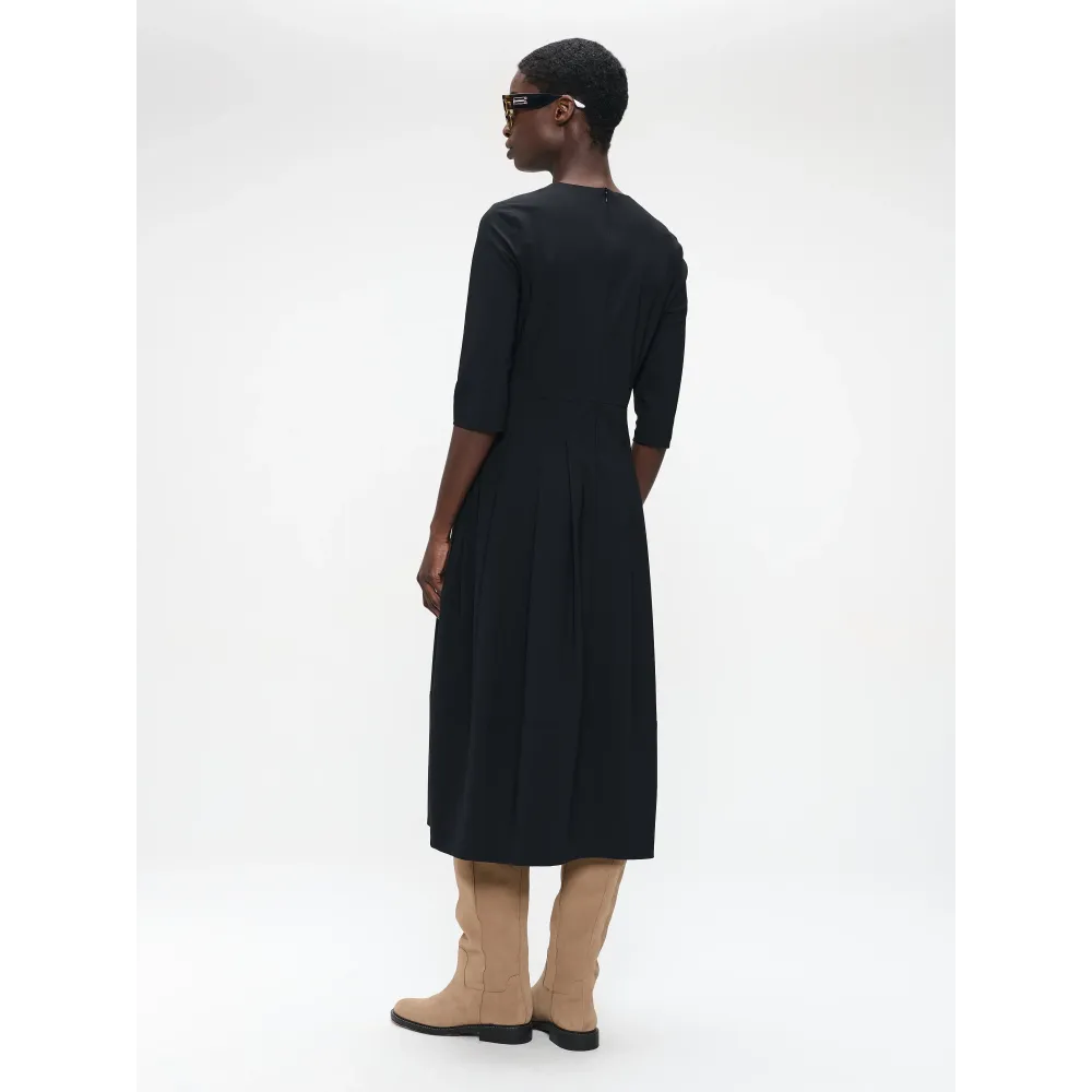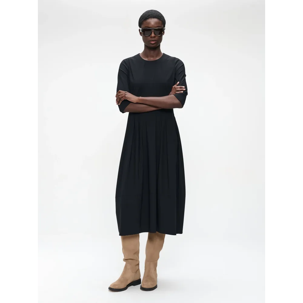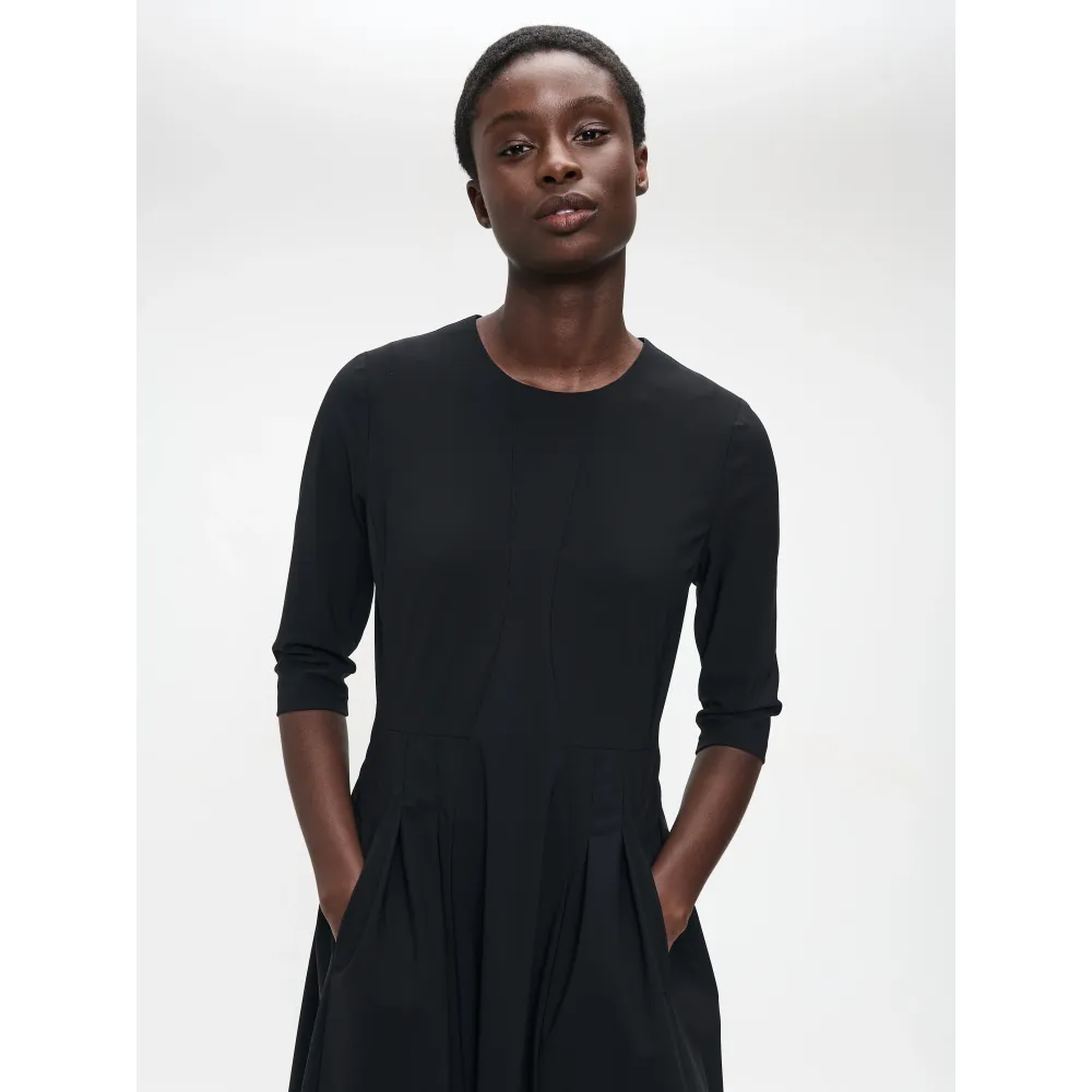 A refined take on everyday comfort, the Heide LS Dress is crafted from soft technical jersey for a smooth, structured fit. Its relaxed A-line silhouette falls below the knee, with discreet side pockets adding functionality. The crew neckline and 3/4 sleeves keep the look polished yet casual — ideal for both workdays and weekends.