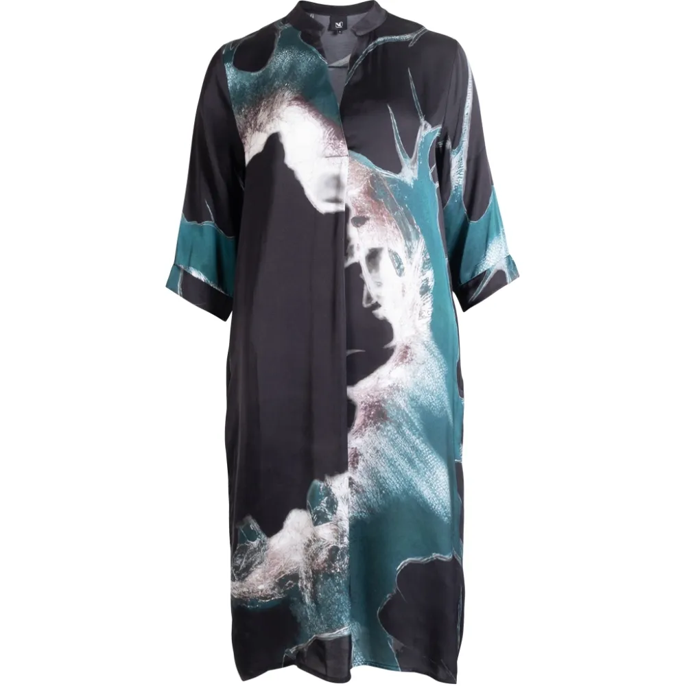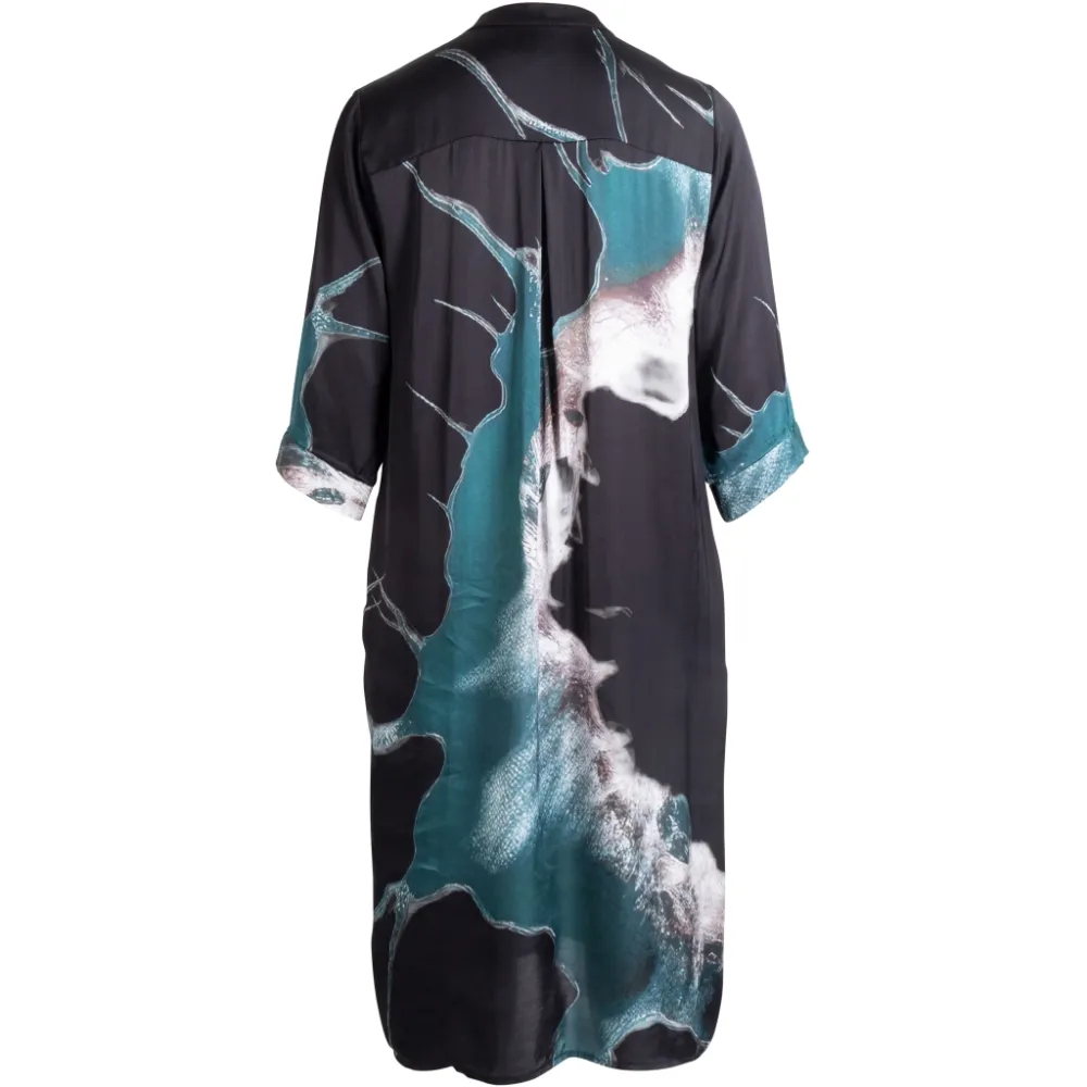 Denne tunikaen kombinerer komfort og stil i ett design. Den har en løs, rett passform med 3/4-ermer og en myk krage, som gir et avslappet men likevel sofistikert utseende. Den heldekkende blomsterprinten legger til visuell dybde, mens den skjulte knappefronten skaper et rent og elegant utseende. En liten fold på baksiden gir ekstra bevegelse og luftstrøm.